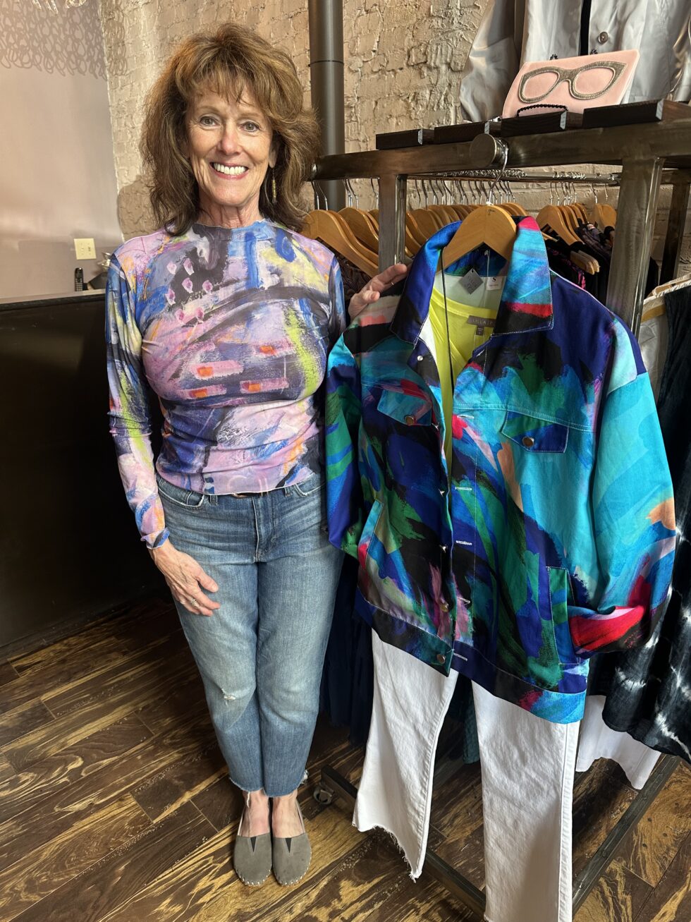 Artist Anita Bradley has taken her vibrantly colorful abstract paintings in a whole new direction — literally from canvas to the fabric you wear out to dinner.