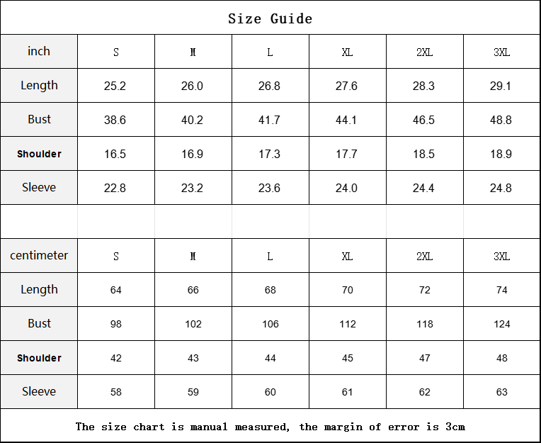| centimeter | S | M | L | XL | 2XL | 3XL |